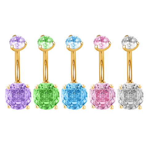 ASTM F136 Titanium Gold Plated Belly Button Piercing Jewelry Radiant Cut CZ Hypoallergenic Engagement Navel Piercing Jewelry