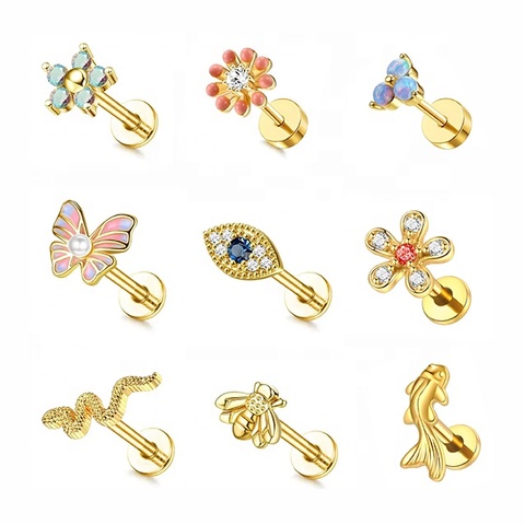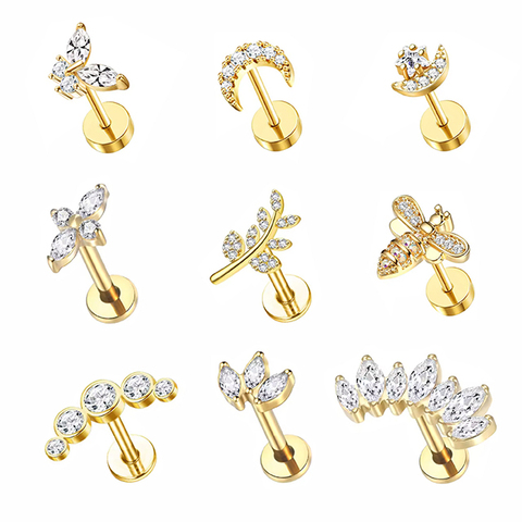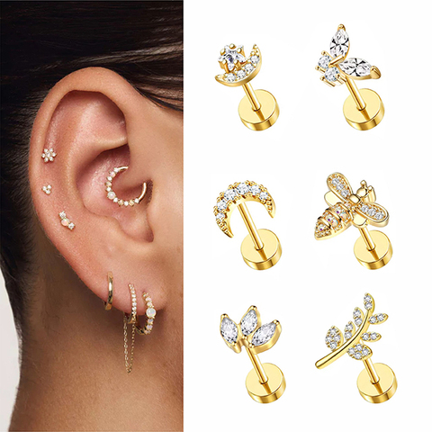 Wholesale F136 Titanium Flat Back Spiral Earrings Inlaid CZ Cartilage Piercing Jewelry INS Fashion Style