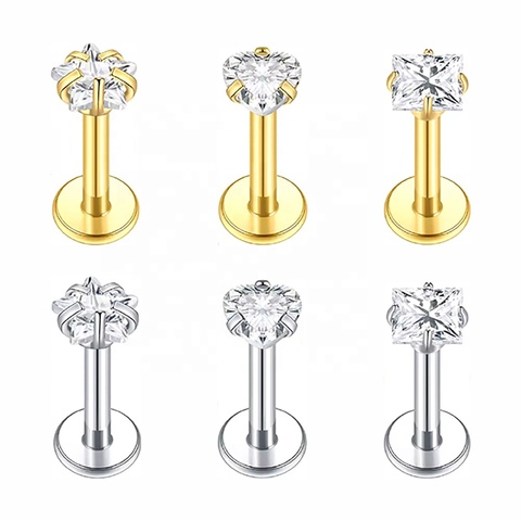 Implant Grade Titanium Flat Back Ear Stud Hypoallergenic Internally Threaded Piercing Jewelry