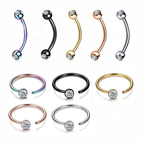 Hypoallergenic Titanium Eyebrow Barbell and Belly Rings with Crystal Ball Body Piercing Jewelry