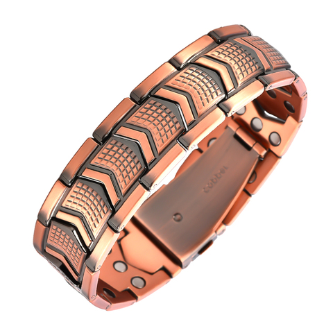 Copper Magnetic Bracelet for Men Trendy Geometric Design with 3X Strength-Premium Fold-Over Clasp