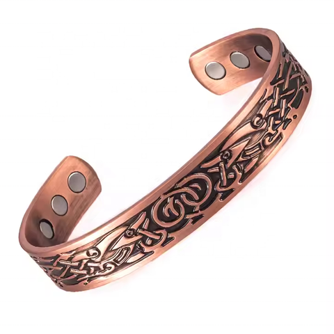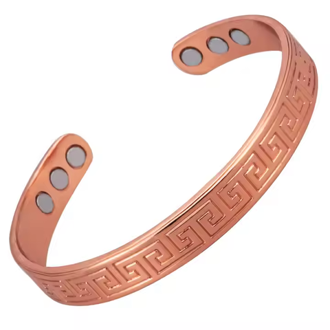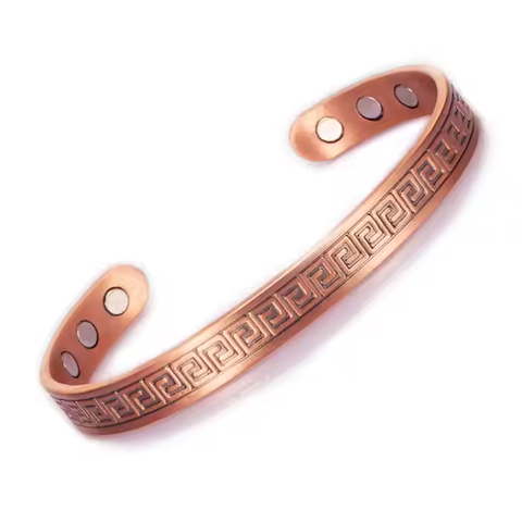 Hottime Antique Copper Plated Classic Geometric Pattern Magnetic Bangle for Unisex
