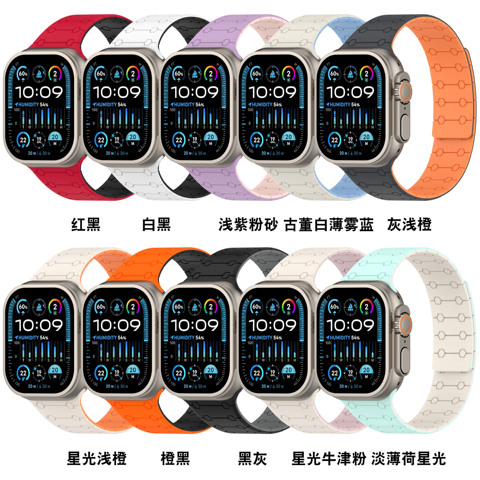 Hexagon Pattern Two-Tone Silicone Magnetic Apple Watch Band | Comfortable Sport Strap