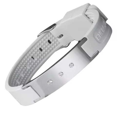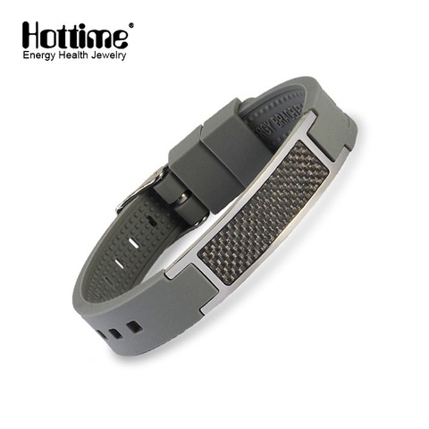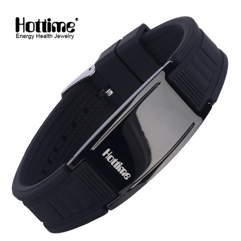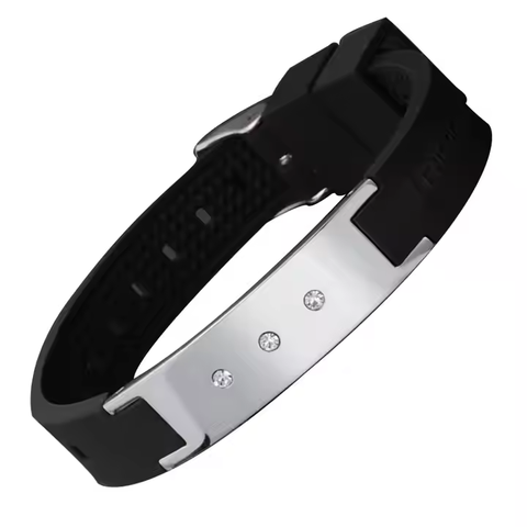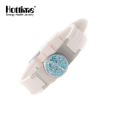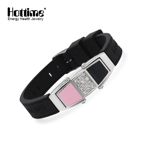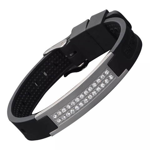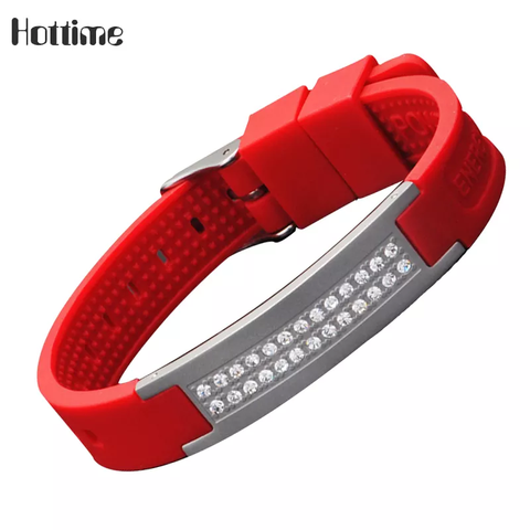 Hottime 4in1 Energy Magnetic Adjustable Silver Plated Zircon Classic Silicone Rubber Sport Unisex Wristband